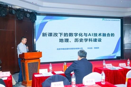 作為中學數字化地理教室、數字化歷史教室解決方案的領先服務商,北京中教啟星科技股份有限公司大區總監賈曉爽在本次活動中分享了《新課改下的數字化與AI技術融合的地理、歷史學科建設》,報告圍繞新課標要求,深入剖析史地學科資源建設的核心要點,詳細闡述了數字化技術與AI技術在學科教學中的應用路徑,憑借專業的視角、扎實的研發實力與貼合教學實際的解決方案,贏得了現場專家與教育同仁的高度認可與廣泛好評。