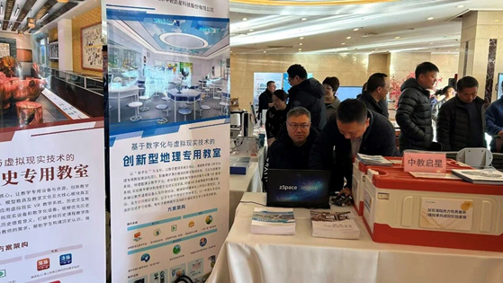 在展覽交流環節,中教啟星集中展示了包括地理VR教學系統、歷史VR教學系統、地理實驗套裝、AI地理實驗教學系統在內的一系列核心產品,吸引了眾多參會教師代表駐足體驗,深入咨詢。中教啟星以科技賦能教學,為地理、歷史等學科教學提供了全新的授課形式與課堂體驗,有效助力教育教學方式創新與教育質量提升。