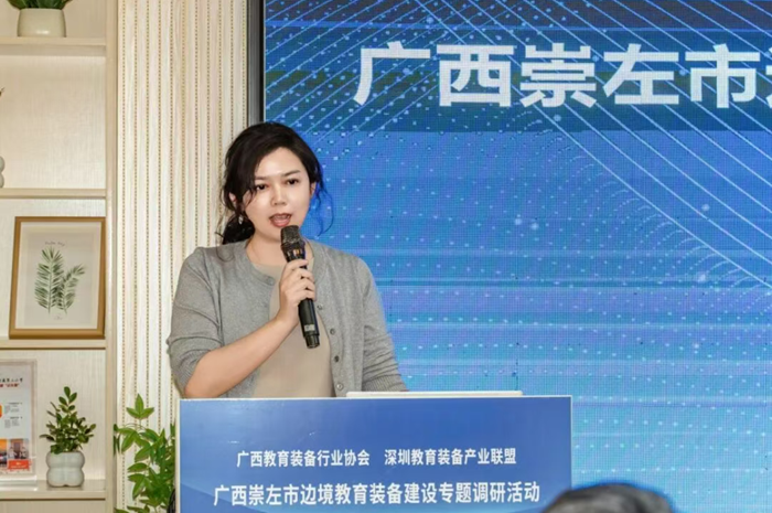 當日下午,桂深教育裝備企業交流研討會如期舉行。會上,23家教育裝備企業逐一展示了在智慧教學、校園信息化、實驗裝備、校園安全等領域的最新產品及解決方案,全方位呈現深圳科創產業優勢。并圍繞桂深兩地教育裝備企業赴崇左開展邊境教育裝備調研、企業產業資源互補、協同發展、深度合作等議題展開熱烈研討,凝聚共識、明確方向。