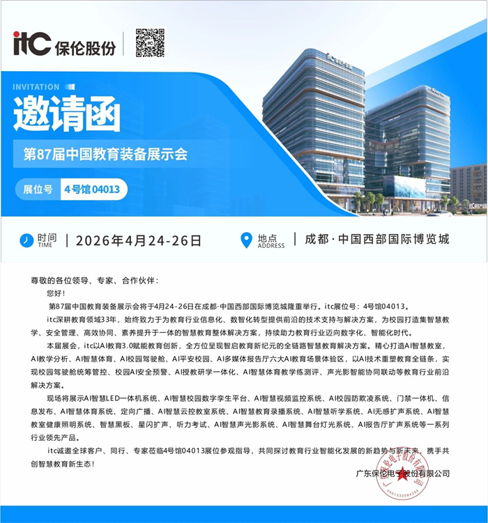 相約成都,4月24-26日,itc邀您共赴第87屆中國教育裝備展示會!
