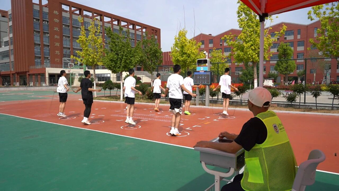 4月14日,河南新密體育中考正式啟幕,北京外國語大學附屬鄭州(新密)外國語學校考點內,11086名考生有序奔赴這場青春測試。