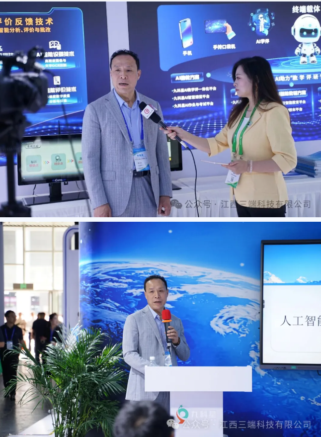 10:00,展會首日,三端科技CEO焦兆群接受中國教育裝備網采訪。
