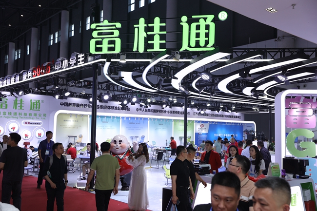 4月24日至26日,以“人工智能引領教育裝備高質量發展”為主題的第87屆中國教育裝備展示會在成都中國西部國際博覽城盛大舉行。作為教育裝備行業的年度盛事,本屆展會展覽面積達18萬平方米,匯聚了國內外千余家企業,集中展示了人工智能賦能教育裝備的最新成果。廈門富桂通科技有限公司(以下簡稱“富桂通”)作為國家高新技術企業及福建省“專精特新”小巨人企業,攜其明星產品陣容高調亮相,在展會現場掀起了一場關于“校園健康與智能儲物”的綠色風暴。