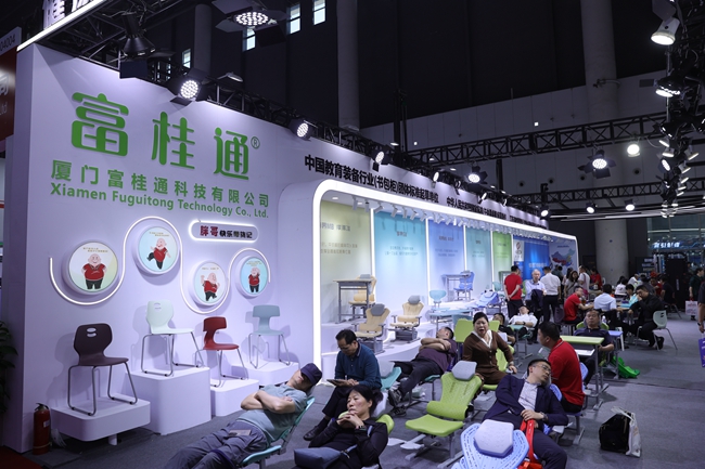 在本次教裝展上,富桂通針對中小學教育裝備升級的迫切需求,重點展示了其自主研發的“午休課桌椅”以及“ABS環保儲物柜”兩大核心產品線,展位現場人氣爆棚。