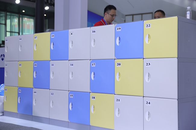 作為《中小學生儲物柜》全國性團體標準的主要起草單位,富桂通的ABS環保儲物柜在此次展會上同樣大放異彩。針對傳統校園儲物柜易受潮、生銹、有異味等頑疾,富桂通展示了其采用ABS環保材質打造的新一代儲物柜。產品具有無毒無味、防潮耐用、抗沖擊等特性,不僅外觀時尚、色彩定制靈活,更在智能應用上實現了升級。現場展示的智能書包柜及更衣柜,通過智能化管理方案解決了校園物品收納的痛點,為構建安全、潔凈的現代化校園環境提供了完美解決方案。