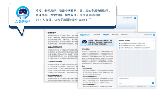 《通知》強(qiáng)調(diào)要利用人工智能和大數(shù)據(jù)優(yōu)化教師培養(yǎng),現(xiàn)代中慶AI教研正是基于這一需求而設(shè)計(jì),體現(xiàn)出AI技術(shù)與教師發(fā)展融合的創(chuàng)新特色。