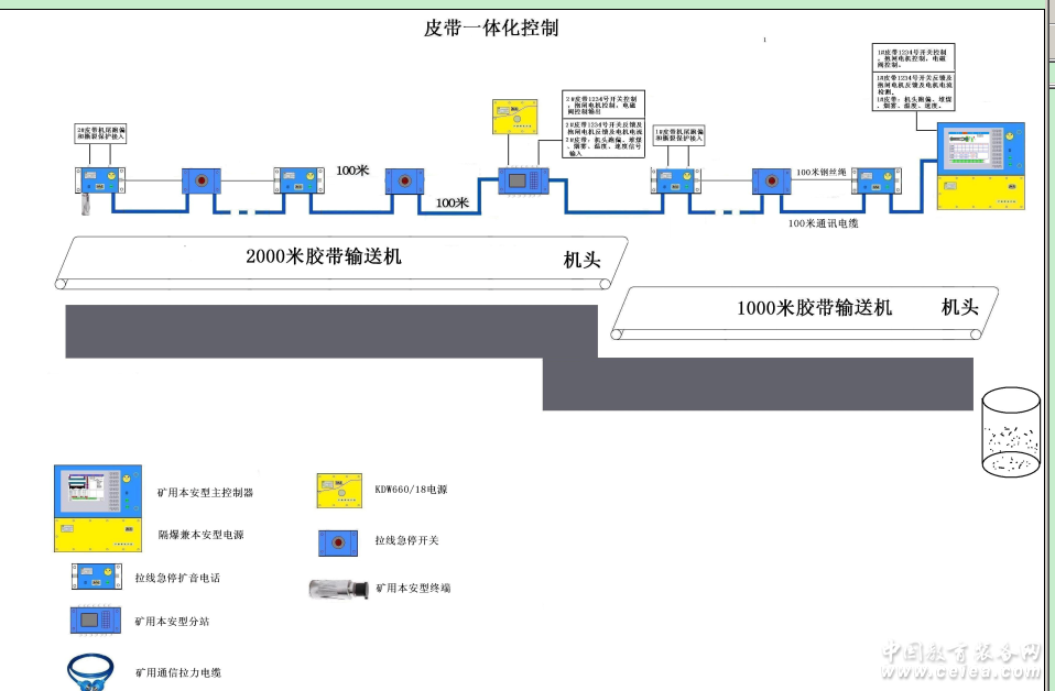 產品詳細介紹1、KTC158煤礦用工作面通信控制系統/皮帶控制系統概述 KTC158礦用工作面通信控制系統整體采用工業PLC和嵌入式技術,人機界面采用12.1寸TFT顯示終端,上位機采用防爆計算機,可實現井下掘進順槽皮帶、采煤工作面順槽皮帶、主運輸皮帶以及洗煤廠皮帶等的保護,控制、 沿線通話、故障檢測、顯示及報警等功能,帶有標準的以太網接口、RS485、RS232接口。從小皮帶到主運皮帶;從單條運輸膠帶到整個礦井的所有固定膠帶機運輸系統;從簡單的頭尾搭接到“丁” 字型、“山” 字型搭接 ;從設備啟停控制到工作電流 、電壓顯示、皮帶速度檢測和顯示、煤倉煤位檢測和顯示、高低煤位停機;電機溫度、運行頻率、風機狀態等的檢測和顯示及計算機遠程傳輸通信;故障自診斷等均可提供全套解決方案。 礦用工作面控制系統 2、KTC158煤礦用工作面通信控制系統/皮帶控制系統功能 (1)控制及報警功能 ●計算機集中控制 操作人員在井上可直接通過鼠標對井下設備進行啟停操作,并可根據實際需要實現設備的單啟、單停;聯啟、聯停;單啟、聯停;聯啟、單停等操作, ●人工就地控制 在就地方式下,操作人員分別對采煤工作面破碎機、轉載機、前部運輸機、后部運輸機、乳化泵站、清水泵站以及各條膠帶的起、停控制。 ●檢修方式控制 井下設備檢修階段,可打破各設備連鎖關系,隨時、任意啟停任設備。 ●點動方式控制 各被控設備在檢修、調試過程中經常要點動電機,此工作方式可實現單個電機的點動。 ●具有同煤流方向互相閉鎖功能,實現順煤流停,逆煤流開。 ●通過按下沿線的急停按鈕可實現緊急停機,并顯示急停位置。 ●啟、停前的語音報警:對起、停過程和各保護信號均有語音報警。 ●帶有磁力起動器負載電流檢測和顯示功能,當電機過載后實現語音報警。 ●各種控制方式間有可靠閉鎖。 (2)顯示功能 ●12.1吋彩色液晶屏以圖形、動畫及漢字顯示 ●被控設備開機率統計及顯示 ●被控設備運行狀態圖形、動畫顯示 ●被控設備運行狀態漢字提示 ●沿線閉鎖位置顯示 ●沿線電纜斷路檢測及斷路位置顯示 ●在計算機屏幕上動態顯示全系統工況、主要保護、參數及每條皮帶運行的有關信息。 (3)礦用工作面控制系統的保護功能 ●系統帶有速度的連續量檢測。通過對系統自帶的速度傳感器信號的檢測,可以進行打滑、過速、欠速和斷帶保護。在參數菜單設定好每一個連續量的報警值和停機值后,一旦達到報警值,將自動報警,超過停機值,將自動停機(當然也可以設定為只報警,不停機)。 ●系統配有堆煤、跑偏、煙霧、環境溫度等開關量傳感器。可對堆煤、跑偏、煙霧、環境溫度等進行檢測和保護。并實現報警停機(當然也可以設定為只報警,不停機)。 (4)語音通訊功能 通過該系統工作人員相互之間可以通話,便于設備檢修、聯絡,同時可與地面通過調度電話實現與皮帶沿線的半雙工通訊。 (5)擴展功能 控制器留有備用容量和接口,可以很方便地進行擴展。 (6)系統所有檢測輸入信號 開關量、模擬量(1~5V;4~20mA;200~1000Hz)由參數設定選擇。 (7)靈活的參數設置和密碼保護功能 ●KTC158型控制箱就地帶有所有檢測及控制的參數調整功能。 ●可直接通過參數調整設置密碼保護功能 3、KTC158煤礦用工作面通信控制系統/皮帶控制系統的特點 ● 國內同類產品中第一款采用西門子本安型PLC用于邏輯控制,大大提高系統的可靠性行。 ● 人機見面采用嵌入式計算機加12.1寸TFT液晶顯示屏。 ● 采用現場CAN總線進行數據傳輸,有效提高通訊距離和傳輸的可靠性。 ● 由于采用了本安型PLC,可輕松實現各種開關量和模擬量信號采集,減少各種V/F、I/F、等轉換電路。 ● 下位機帶有8寸的液晶顯示屏和本安型PLC,杜絕各設備的盲開。 |