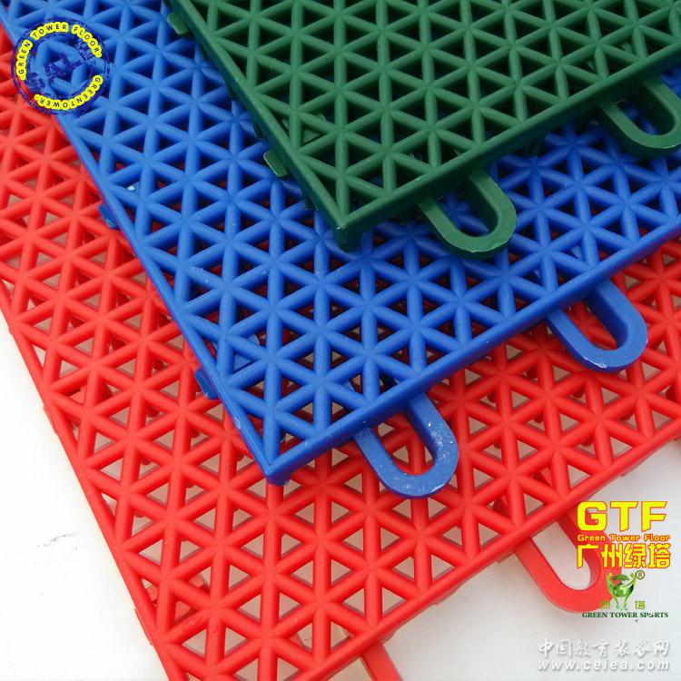 產品詳細介紹=圓柱三角形懸浮地板LTYZSJX產品特點== 產品名稱:懸浮式拼裝地板 產品介紹:型號:LTYZSJX 名稱:懸浮式拼裝地板/圓柱米格地板 尺寸:250*250*12.7mm 使用壽命:8-10年 材料:聚丙烯(PP) 表面形態(tài):圓柱米格 使用溫度:-40℃——80℃ 產品優(yōu)點: 1、良好的運動及保護性能; 2、拼裝設計、容易安裝及拆卸; 3、單片受損單片更換,不影響使用; 4、迅速排水,全天候使用; 5、100%可回收,無污染,食品級安全材料,無毒無味,無重金屬; 6、10年超長使用壽命; 7、顏色多樣,顏色可根據(jù)客戶需求設定 拼裝運動地板特點: 1、壽命長: 本產品主要材料為聚丙烯(PP)。綠塔拼裝運動地板在原料中同時采用抗寒冷、抗氧化、抗紫外線輻射等多種添加劑,屬改性的工程聚丙烯材料,保證了本產品在全天候(高溫+70°C、-40°C)條件下使用色澤持久、不翹曲、不變形,壽命超過15年。 2、綠色環(huán)保: 聚丙烯(PP)屬食品級材料,是無毒、無味、不寄生細菌的綠色環(huán)保產品。 3、多功能性: 產品適用于室內外網球場、籃球場、足球場、手球場、羽毛球場、乒乓球場、曲棍球場等體育運動場地,同時也適用于健身中心、幼兒園、各種休閑娛樂場所。尤其是在室外鋪裝鏤空的地板,排水效果好,雨后即可使用,更適合在雨水較多的地區(qū)使用。 4、有效的緩沖性能和高彈性能: 弓形懸浮梁、加強支撐腳技術的應用,使拼裝后的運動地板具有卓越的減震性能,可有效減少對運動員的損傷;同時能夠增加對球的回彈性,籃球的反彈率可達96%(國家標準GB/T19995.2--2005要求籃球反彈率為90%以上)。 5、標準的防滑值: 在表面防滑處理上,地板的設計采用了仿生學的原理,產品的防滑值達到了德國標準DIN18032對運動木地板的要求。 6、性價比高: 適應性強(可適用于室內外)、投資少(基礎投資僅僅是PU運動地板的一半)、壽命長(是PU塑膠運動地面的兩倍以上)、質量穩(wěn)定(本產品基礎層無需防水處理,而PU塑膠運動地板基礎層防水處理不好的情況下可能出現(xiàn)起鼓現(xiàn)象)、色彩豐富(顏色由用戶選定或提供色樣),安裝、拆卸、更換、移動方便,維護成本低,是各類運動場地的最佳選擇。