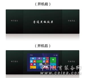 當(dāng)打開電源時(shí),中間一塊顯示出液晶的顯示畫面,可以進(jìn)行觸摸互動(dòng),而關(guān)掉時(shí),顯示畫面隱形,又顯示為一個(gè)普通黑板的表象,在上面進(jìn)行書寫。