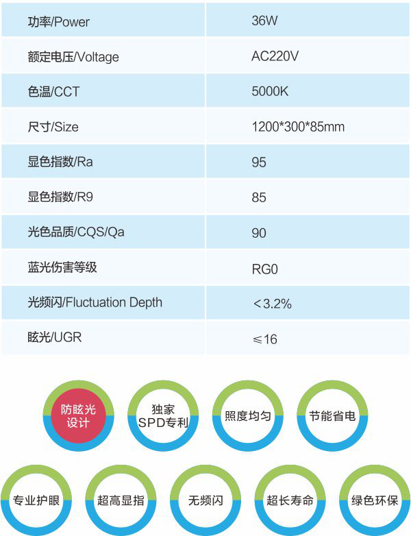 綠色護眼教室燈