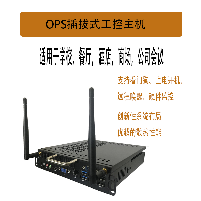 產(chǎn)品詳細(xì)介紹本產(chǎn)品是一款超薄的OPS 整機(jī),基于 Intel 第5代Mobile U系列超低功耗平臺(tái)的 CPU,支持 WinXP、Win7、Win8、Win10 和 Linux 等操作系統(tǒng); 整機(jī)采用合金材質(zhì)并做陽(yáng)極黑色氧化,外型小巧、超薄、結(jié)構(gòu)簡(jiǎn)單,I/O和擴(kuò)展接口豐富,且配備OPS插槽,是一款為電子教育白板和會(huì)議白板量身打造的產(chǎn)品。 ●產(chǎn)品規(guī)格 主要規(guī)格 處理器 Intel 6/7 th Generation Core™ i3/i5/i7 LGA1151 內(nèi)存 1* SO-DIMM 16GB DDR4內(nèi)存插槽 存儲(chǔ) 1*Msata SSD,1*SATA標(biāo)準(zhǔn)接口 Wifi 1*WIFI Module support 802.11b/g/n+2.5db雙增益天線 視頻 Graphics Intel HD Graphics 接口 1 個(gè) HDMI Port(最大支持分辨率: 4096x2160) 1 個(gè) DP Port(最大支持分辨率:4096x2160) OPS 擴(kuò)展槽,1 路 HDMI 信號(hào)輸出 網(wǎng)絡(luò) 1 個(gè) 10/100/1000Mbps 網(wǎng)絡(luò)接口,支持網(wǎng)絡(luò)喚醒 音頻 Intel HDMI HD Audio Realtek 集成6聲道音效ALC662聲卡芯片 1 × LINE-OUT & MIC-IN USB 速率 USB3.0 5Gb/s 和 USB2.0 480Mb/s (理論值) 接口和插針 主機(jī)前置4個(gè)USB3.0 Port, 2 個(gè)USB2.0 Port OPS 擴(kuò)展槽,有 2 個(gè) USB3.0 , 2 個(gè) USB 2.0 電源接口 DC-Jack和OPS子卡供電接口,12-19v DC 電壓輸入 尺寸規(guī)格 195*180*42mm(可選30mm/40mm厚度機(jī)殼) 操作系統(tǒng) Windows WinXP/Win7/Win8/Win10 其它 Unix/Linux 工作環(huán)境 溫度 -10~50℃ 濕度 0~85%RH