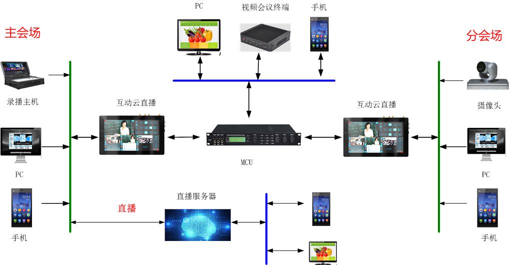 互動直播主機: 嵌入式硬件,無縫切換無黑屏、閃屏,無延時。前面板支持全彩LCD視頻監視,以及菜單按鍵操作。 實時顯示錄制信息,包括錄制時長、視頻分辨率、主機IP等信息。 云臺控制界面:具有6個預置位數字鍵,上下左右、拉近拉遠調節界面。 7路高清視頻的實時預覽顯示,可以HDMI/遠程互動混合同時輸入。 視頻輸入接口:2路HDMI輸入接口; 視頻輸出接口:2路HDMI輸出,其中HDMI1支持4K輸出。 音頻接口:2路立體聲線路接入;2路線路輸出、1路3.5mm本地耳機監聽接口。 控制接口:2路IR、2路IO、4路USB接口。網絡接口:2路RJ45 LAN接口。 編碼:1080p30fps音視頻編碼;解碼:1080p30fps音視頻解碼; 編碼格式:視頻支持H.264SVC/HP/MP/BP可選;音頻音頻編碼格式AAC/G.711。媒體文件格式MP4。 視頻編碼碼流:56Kbps~16Mbps可調,音頻采樣率8-48HZ可調,音頻編碼碼率8-320Kbps可調。 畫面合成:1路畫面合成,提供2/4/6/8/自定義等多種模式選擇,合成分辨率4K或1080P設置。 音頻處理器模塊:支持混音編組、自動反饋抑制AFC、自動回聲消除EC、自動噪聲消除ANC; 遠程互動:支持RTSP/SIP等多協議混合遠程應用模式,RTSP/SIP支持四方互動模式; 流媒體協議:支持TCP/UDP/RTSP/RTP/RTMP/SIP/TS協議; 存儲:標配1T硬盤,最大可支持2路SATA接口硬盤,支持單盤3T硬盤,在設備網頁及設備輸出導播界面中具備對單個視頻文件查看、下載、與刪除等功能。 基于B/S及本機HDMI/VGA視頻輸出GUI雙管理操作界面架構,B/S兼容IE等瀏覽器。 |