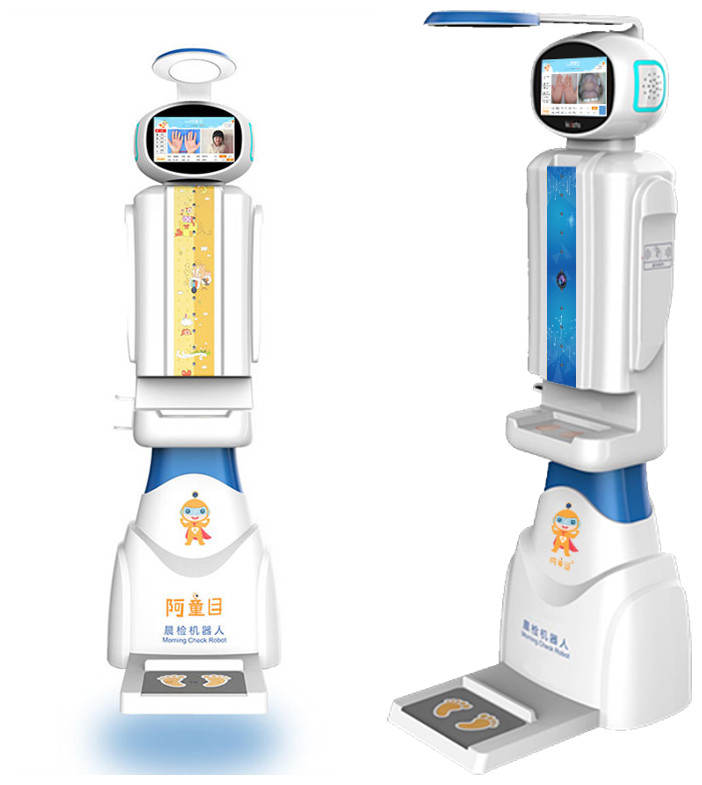 產品詳細介紹阿童目自主研發的“晨檢機器人”集成了智能傳感器、視覺算法、電子電路、大數據、互聯網等先進技術,僅需4秒即可完成“自動測溫、手檢、口腔、身高、體重、簽到考勤、拍照留存、實時顯示”等檢測功能和“咳嗽、外傷、指甲”等輔助功能。