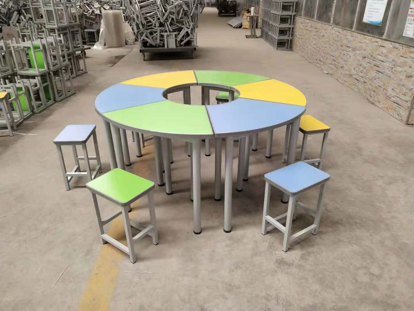 產品詳細介紹板式閱覽桌采用25mm厚度E1級環保高密度生態板,無異味免噴漆工藝,一般一套桌子組合為6個為一個圓,可以定制任意尺寸和規格,桌子和鋼木方凳可以隨意搭配圖案,主要用于校園的閱覽室,心理咨詢室,創客教室,手工活動教室,美術教室,圖書館教室等,