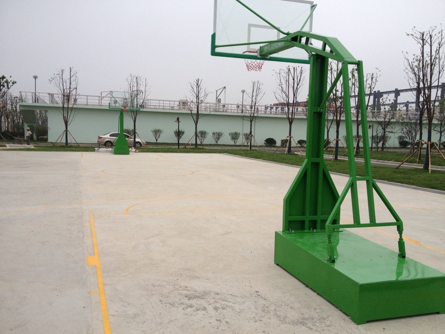 固定籃球架編輯 鎖定 固定籃球架分為真固定和假固定籃球架,真固定籃球架實(shí)際就是預(yù)埋籃球架,就是事先要在安裝籃球架的地面上挖坑,然后把籃球架配套的預(yù)埋件放下去,用準(zhǔn)備好的混凝土澆筑,等干燥了以后再把籃球架的架子及籃球板和籃球框部分安裝好。這種預(yù)埋式籃球架安裝好了以后真的就動(dòng)不了了,即使以后想要拆除的話,也只能把地面以上的部分帶走,底下的就得用挖掘機(jī)械把底下的部分?jǐn)U大范圍全部掏出來才行。這種籃球架常見的有這么幾種樣式,詳見圖冊。