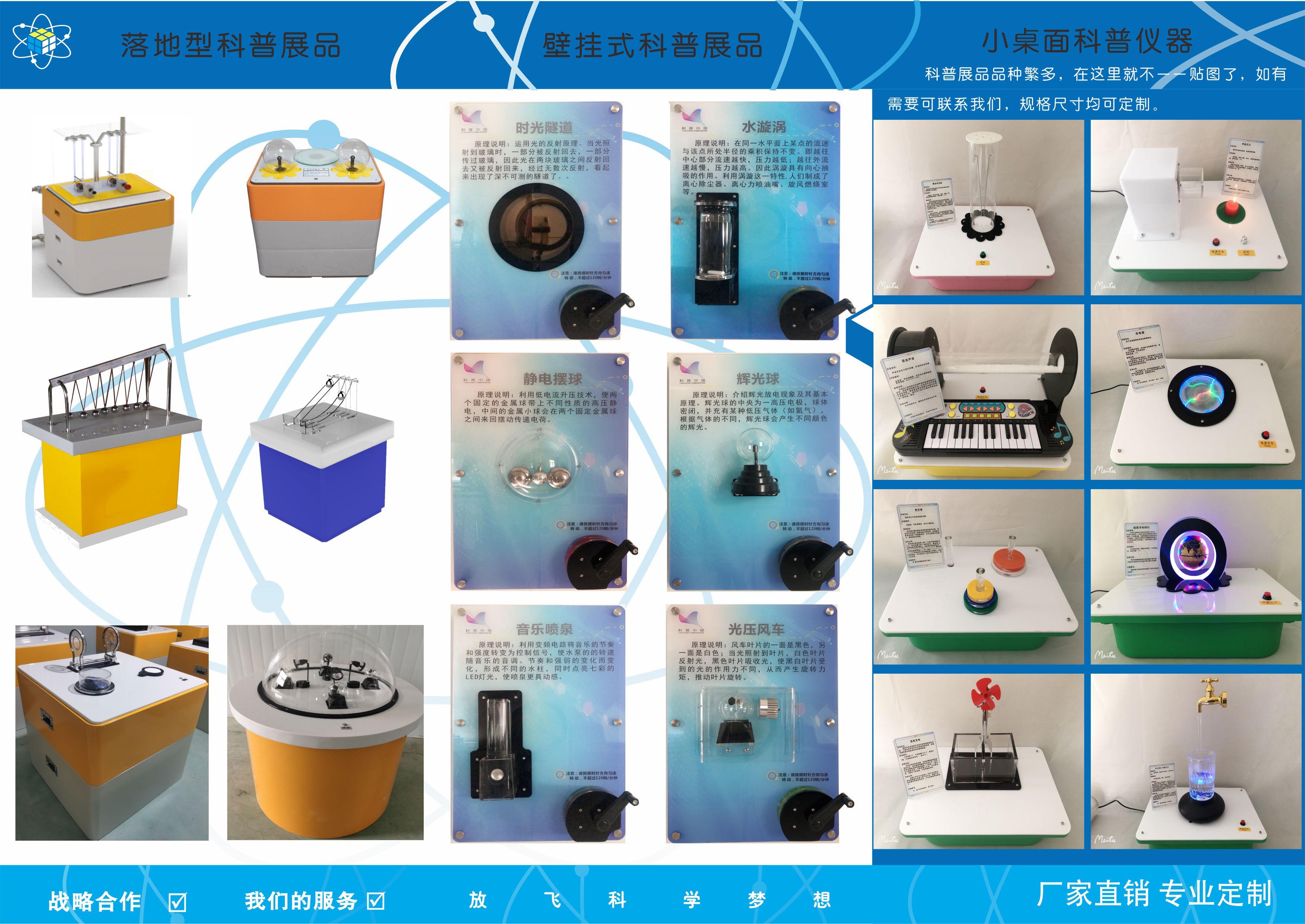 產(chǎn)品詳細(xì)介紹產(chǎn)品統(tǒng)一規(guī)格: 尺寸:600*400;材質(zhì):亞克力板。主要展示器件安裝于兩塊亞克力前后板上;前板為5mm厚透明亞克力板,后板5mm厚白色亞克力板;背板采用開模一體。產(chǎn)品文字說明及圖片,采用不低于絲網(wǎng)印刷技術(shù)UV印制的背景圖,彩色圖片須平板打印到背板上,保證不能因受潮褪色;前后板可用6顆50mm的工藝螺釘固定于墻體上;儀器整體具有防塵和安全防護(hù)裝置。不使用外接電源,如產(chǎn)品需要供電采用模塊化手搖發(fā)電機(jī)構(gòu)和穩(wěn)壓穩(wěn)流技術(shù)供電。不使用AC220V電源,確保操作的安全性。