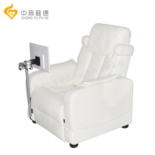 產品詳細介紹專業型音樂放松椅1臺+15寸顯示屏1套+顯示屏支架1套+催眠眼罩2個+音樂治療導論1本+按摩控制器1個+安裝工具1套組成。 3、設備詳情 a、音樂放松椅尺寸約為:105cm*86cm*110cm(收起)±3cm,170cm*86cm*89cm(展開)±3cm,產品重量:45KG,電源:220V(50HZ),顏色為:米白色 b、音樂放松椅是利用音樂聲波的頻率和聲壓會引起心理上的反應,良性的音樂能提高大腦皮層的興奮性,可以改善人們的情緒,激發人們的感情,振奮人們的精神。同時有助于消除心理、社會因素所造成的緊張、焦慮、憂郁、恐怖等不良心理狀態,提高應激能力。 c、★音樂放松椅自帶音樂放松按摩療法,可對背部、腰部、頭部、腿部等部位進行音樂放松按摩。 d、★音樂放松椅自帶藍牙系統,可接受IOS系統,安卓系統等手機,平板無線鏈接,可無需數據傳輸線遠距離播放心理音樂。15寸高清LED數字屏打造,系統內置100余首心理音樂,15分鐘放松指導語,4大類型心理視頻(含心理控制呼吸放松真人視頻、心理腹式放松視頻、心理肌肉放松真人視頻、心理鼻腔放松真人視頻)。含專業心理催眠圖片(錯覺圖,不可能圖形等); e、顯示器支架銀白色,大氣美觀,支架可搖擺,可旋轉,顯示器可360°旋轉,可固定在某一個角度,符合心理咨詢師的要求。 f、通過按摩控制器可控制沙發按摩強,中,弱3擋調節,按摩部位選擇,定時功能(15min,30min2種模式可選擇),可循環部位按摩 g、催眠眼罩2個:23*7CM,黑色,透風棉質,帶耳機通風口,帶松緊調節扣 h、音樂治療導論1本:(附光盤修訂版),中國心理學會推薦用書(涵蓋音樂治療的歷史,音樂治療的定義及基本原理,音樂治療的形式等。) i、附帶安裝工具(一字頭,十字頭螺絲刀,新型內六角) |