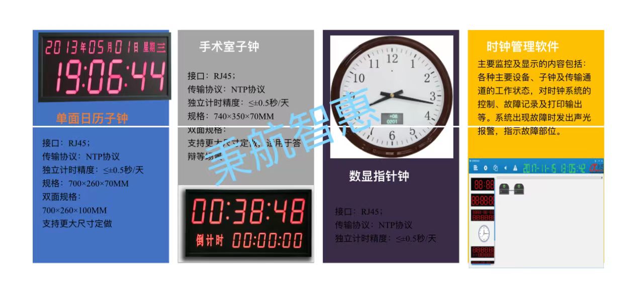 產(chǎn)品詳細(xì)介紹系統(tǒng)由GPS/北斗雙衛(wèi)星時間信號接收天線、中心母鐘、時鐘管理計算機(jī)、NTP服務(wù)器、電源、子鐘、及通信線路等部分組成。