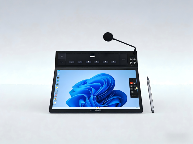 產品詳細介紹1.控制書寫終端包含主書寫屏及終端控制屏兩個部分,采用雙屏一體化設計; 2.終端主書寫屏23.8 英寸,分辨率1920*1080,顯示比例 16:9;終端控制屏(長條形狀)19.1英寸,分辨率1920*480,控制屏與書寫屏夾角145-170 度可調; 3.書寫屏面板采用無縫隙全貼合技術,屏幕具有防眩光、防指紋、防反光效果,支持 10 點觸控; 4.雙屏采用電容、電磁觸控方式; 5.控制屏內嵌2 個 USB3.0、1個TEPY-C、一個母卡儂接口、1個人臉識別攝像頭和刷卡器;在控制屏的右邊內嵌升降及傾仰角調節按鈕,可調節講臺高度及角度調節; 6.控制屏支持對接錄播系統,支持錄制、停止控制等功能; 7.控制屏具有語音呼叫功能,教室呼叫時,運維管理系統可自動定位教室,支持呼叫生成運維工單; 8.控制屏具有上課、下課控制,投影機、大屏開關,音視頻信號切換,音量大小控制等功能; 9.書寫終端具有板書功能,支持顏色、筆跡粗細設置,支持擦除、清空、保存板書等操作; 10.書寫終端具有PPT批注功能,將當前教學的重點內容進行批注; 11.書寫終端具有聚光燈功能,授課時候可將重點內容通過聚光燈功能進行特殊強調,聚光燈可調整大小; 12.書寫終端具有截屏功能,截屏自動保存到本地電腦指定文件目錄,便于課后分享給學員; 13.書寫終端具有ppt預覽功能,快速切換到對應ppt頁面,支持ppt講解備注顯示; 14.書寫終端具有批注、清除、返回、聚光燈、錄制、截屏等功能; 15.控制屏具有對電腦上打開的程序進行預覽,可切換預覽的程序。 |