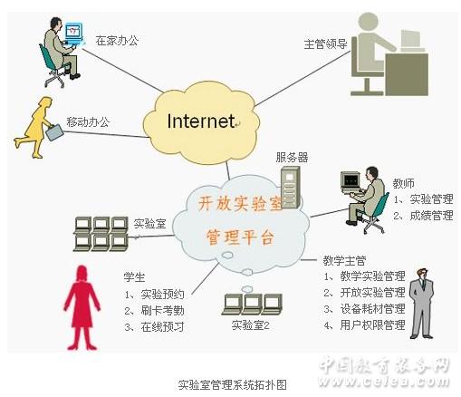 教學實踐的信息化管理工作主要基于開放/ 創新實驗的管理工作,需要突破空間和時間限制,從實驗預習、實驗網上預約、實驗安排、實驗考勤,實驗過程、實驗成績、實驗耗材、實驗設備、在線答疑以及實驗室場地、自動門禁、刷卡考勤等管理,從而構成了一個綜合開放的實驗室管理平臺。