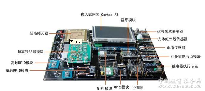 ITS-WSNRA8 由A8 核心板,實(shí)驗箱底板,7 寸觸摸屏,Zigbee 協(xié)調(diào)器,若干個Zigbee 節(jié)點(diǎn),藍(lán)牙設(shè)備,WIFI 設(shè)備,UHF 超高頻部分、HF 高頻部分、LF 低頻125K 部分的RFID 讀寫模塊和一個GPRS 模組構(gòu)成。Cortex-A8 內(nèi)核基于ARM v7 指令架構(gòu),適用于復(fù)雜操作系統(tǒng)及用戶應(yīng)用,運(yùn)行速度可達(dá)1GHz,功耗在300mW 以下,而性能可高達(dá)2000MIPS。