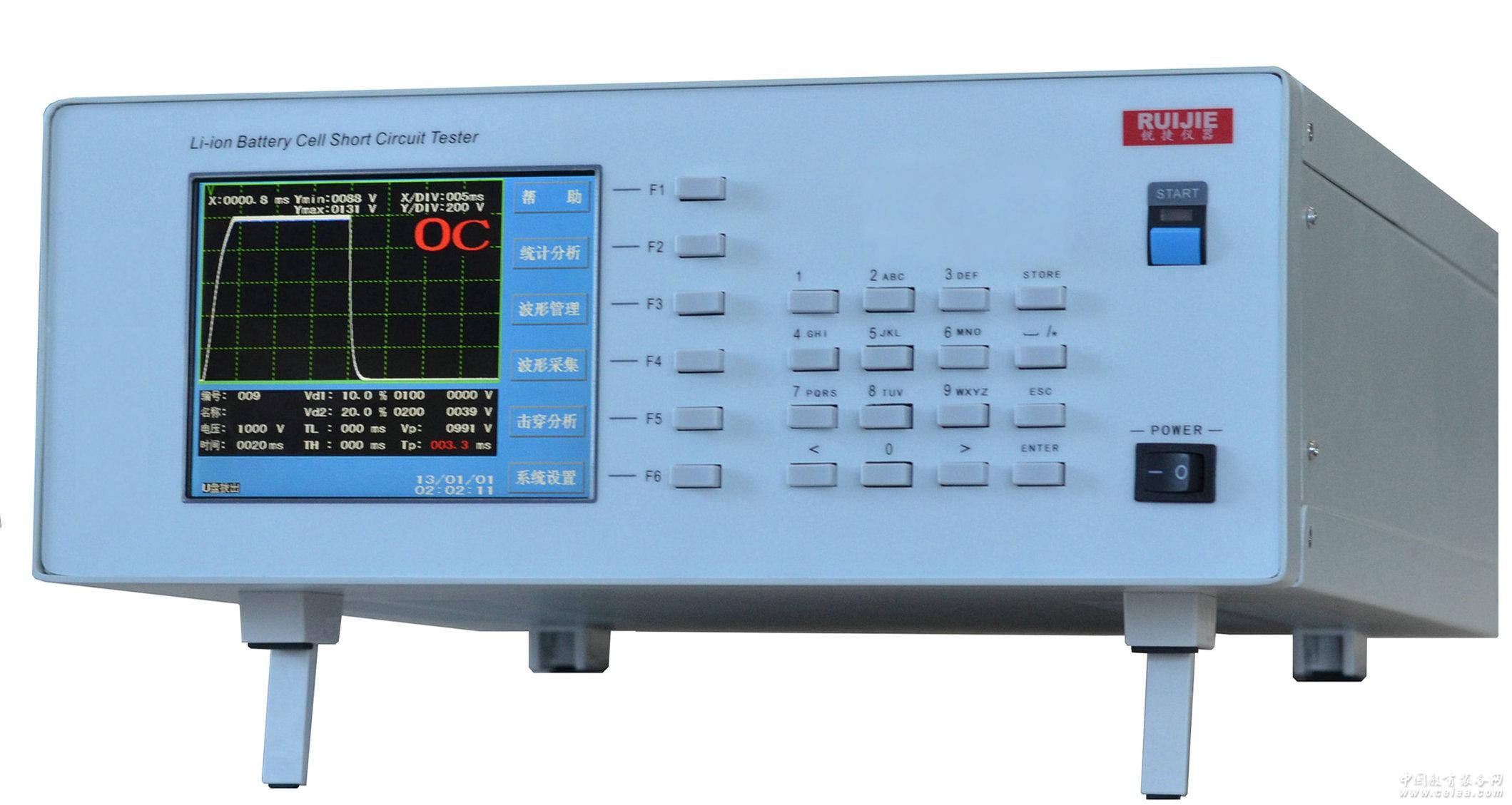 RJ69系列 鋰電池芯短路測試儀分基本型和標準型(分析型)共4個型號(B后綴的為基本型),您可以根據具體需求結合下面的規格表進行選型,盡管型號不同,作為同一系列,儀器的操作和功能是共通的: 擊穿分析(僅標準型):根據設置的起始電壓、終止電壓、步進值等參數,儀器可對被測電池芯進行電壓遞進式的自動或手動測試,直到電池芯正負極擊穿點出現。 自動偵測(僅基本型):在主界面下,按ENTER鍵即開始自動偵測,此時啟動鍵上的紅燈在閃爍,被測品一旦連接到測試下上,則自動進行一次測試。按ESC鍵可推出自動偵測狀態。 波形管理:儀器自身可存儲100組或1000組測試參數,即可存儲100或1000種型號的電池芯測試設置參數。您可以通過測試組的編號或存儲時輸入的名稱進行查詢。 統計分析:儀器自帶統計功能,測試的總數、合格/不合格率,甚至提供不合格分類的統計信息 數據拷貝:對于您關注的某項測試結果,可以通過U盤將當前的測試界面以圖片或數據的形式拷貝下來。 |