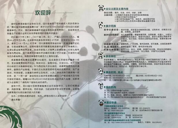 金秋十月,第80屆中國(guó)教育裝備展示會(huì)在成都舉行,讓我們相聚成都,再敘友情,展示交流,合作創(chuàng)新,為促進(jìn)教育事業(yè)科學(xué)發(fā)展、全面推動(dòng)教育現(xiàn)代化做出新的更大的貢獻(xiàn)!