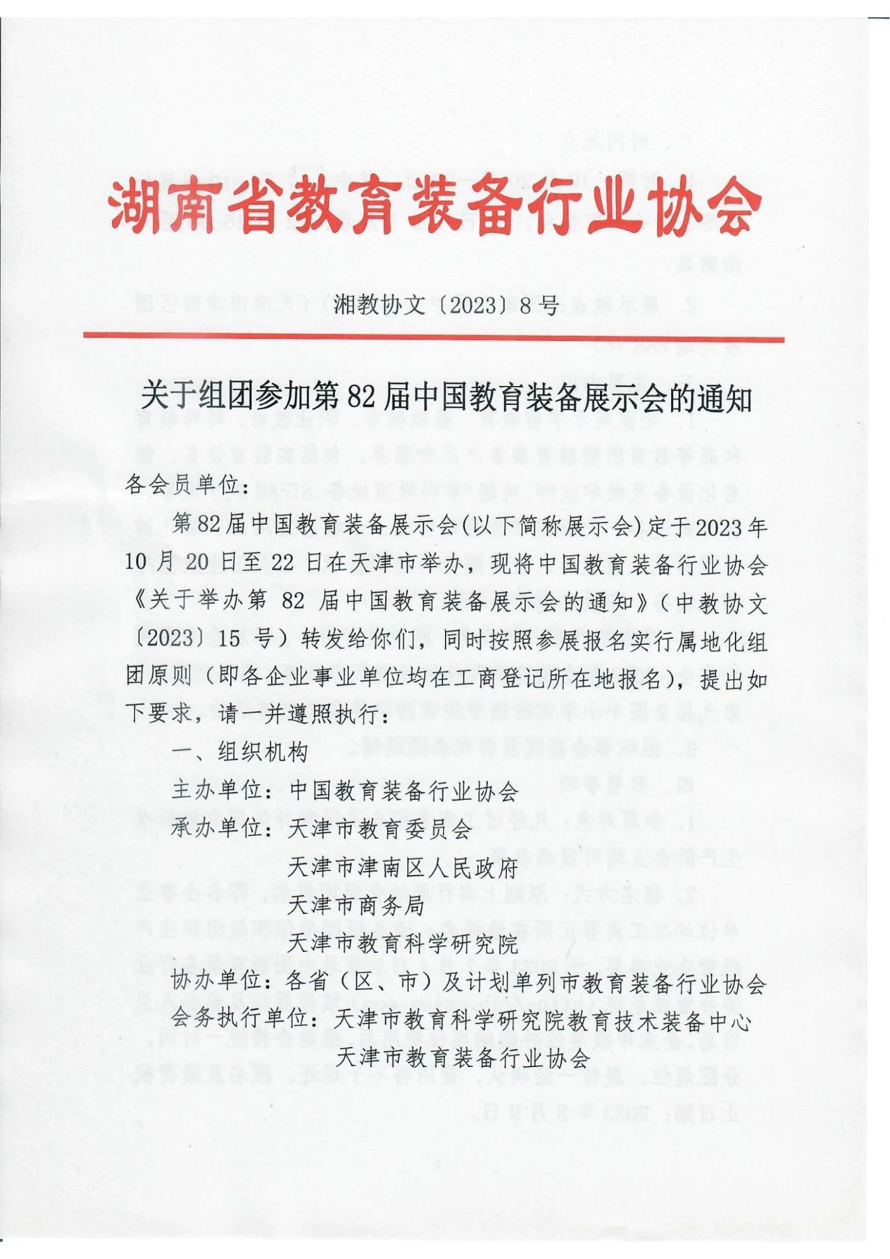 湖南省教育裝備行業協會關于組團參加第82屆中國教育裝備展示會的通知