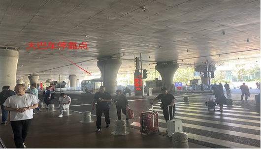 1、接站大巴車停靠位置:T2航站樓到達5號門外正前方第二條車道