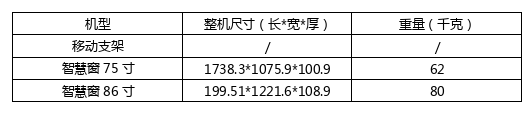 智慧窗大屏設(shè)備單臺(tái)往返運(yùn)費(fèi)及設(shè)備規(guī)格(加壁掛厚度增加30mm)如下: