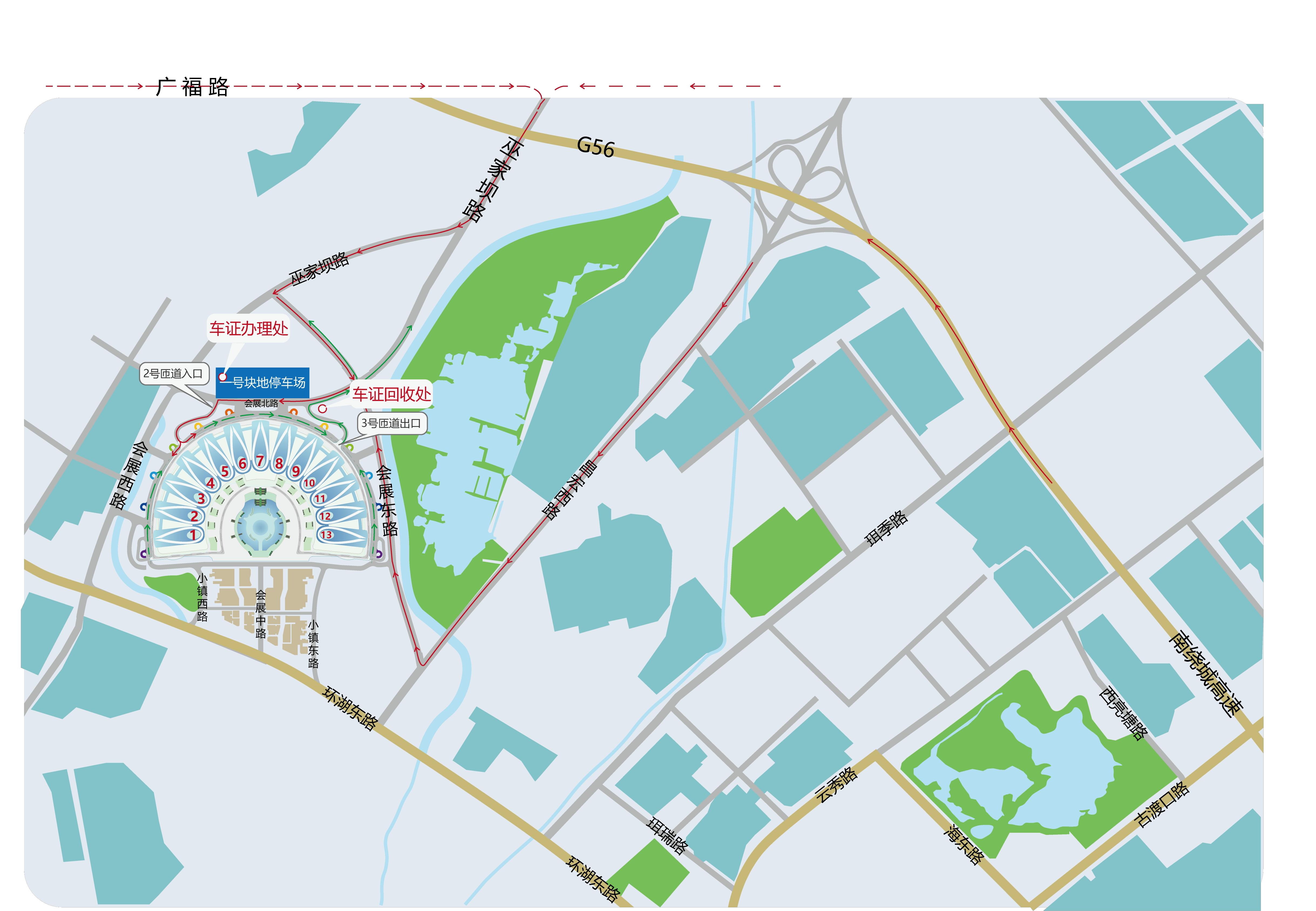 ←紅色為貨車進館路線 →綠色為貨車離館路線