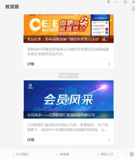獲得在“中國教育裝備展示會”官方微信公眾號“教裝展”平臺發(fā)布企業(yè)推廣文章(一篇)的機會。