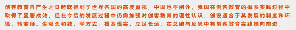 創客教育根基于民主、自由、開放、共享的草根文化,其實施效果的好壞不是由技術、設備的先進豪華與否所能決定的,而取決于教育中是否蘊含創新、實踐、共享的創客精神和理念,因此即使沒有先進的工具也不妨礙其辦成優質的創客教育,更何況目前教育資源正日漸豐富,互聯網等技術已使資源共享成為可能。創客教育也不是個別學科的專利,其形式多樣,從成果屬性上看,有與科學發現、技術改造、制度變革、文化生產傳播等相關的創客教育;詳細>>> |
