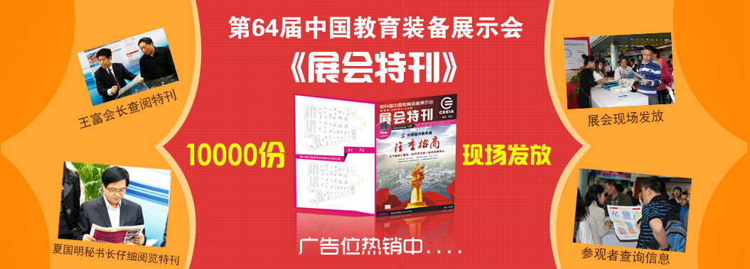 您想在展會特刊上宣傳自己的企業(yè)嗎? 《第64屆中國教育裝備展示會特刊》廣告招商中,位置稀缺、先定先選,歡迎垂詢! 招商熱線:0551-65331897 、 65373054 |