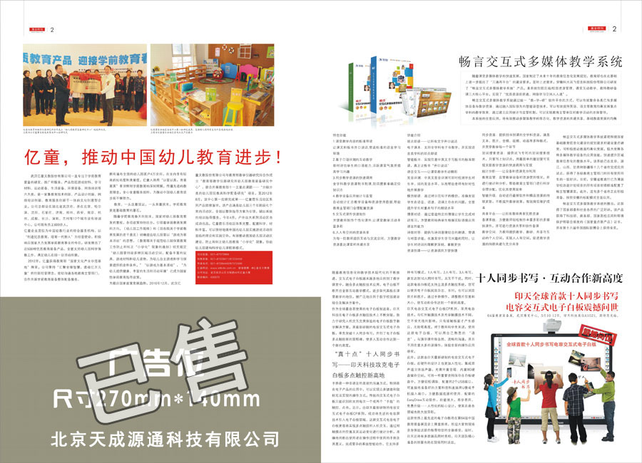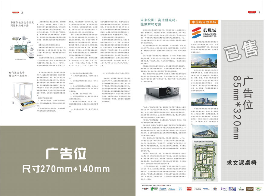 | 《第64屆中國教育裝備展示會特刊》是中國教育裝備展示會的輔助刊物,內(nèi)容以日程安排、會場展館圖、最新展會信息和近期行業(yè)動態(tài)、裝備資訊、技術(shù)文章等為主。每期印發(fā)10000份,由工作人員逐一發(fā)放到參會人員手中,輕便全面,受到行業(yè)領(lǐng)導(dǎo)、企業(yè)和與會觀眾的一致好評! |